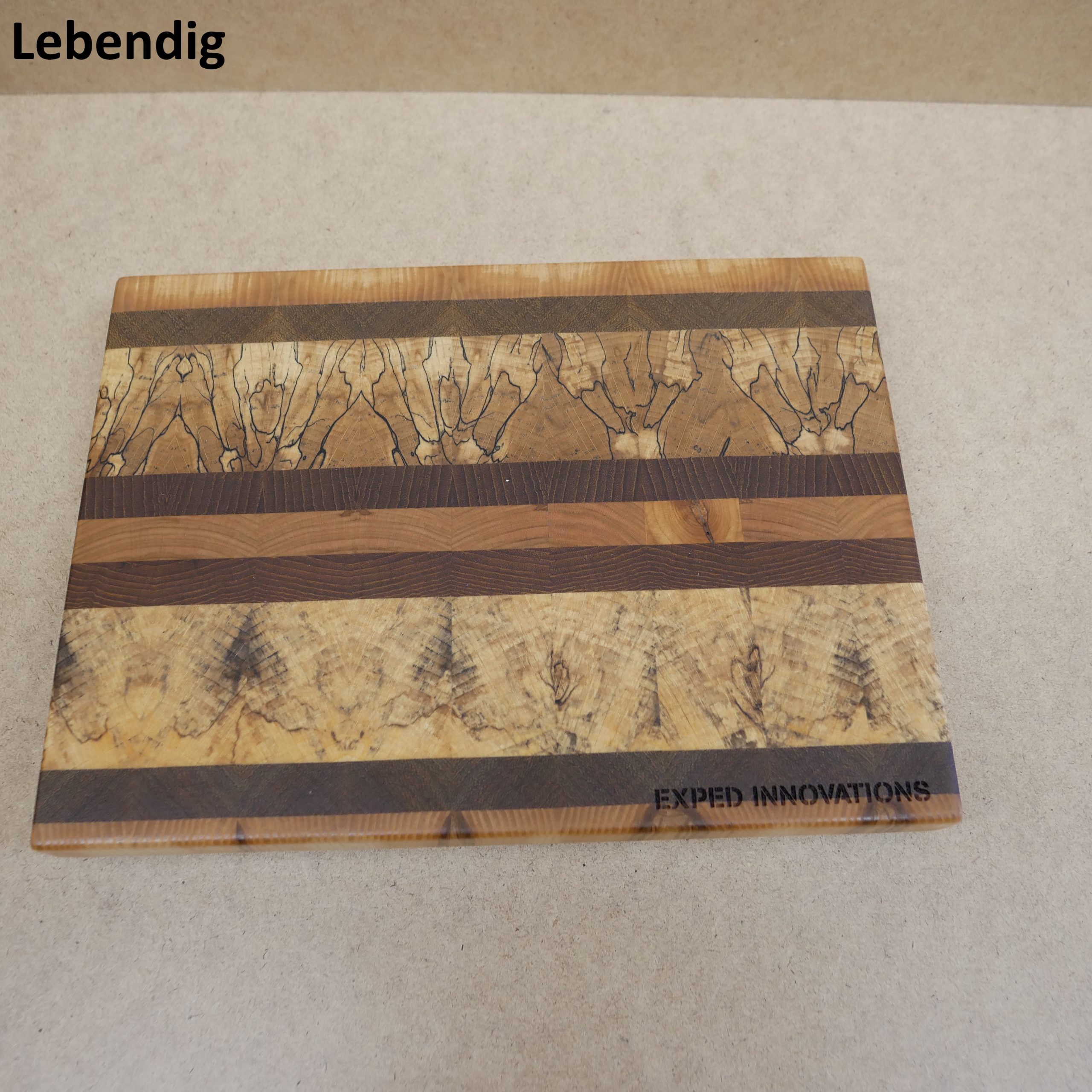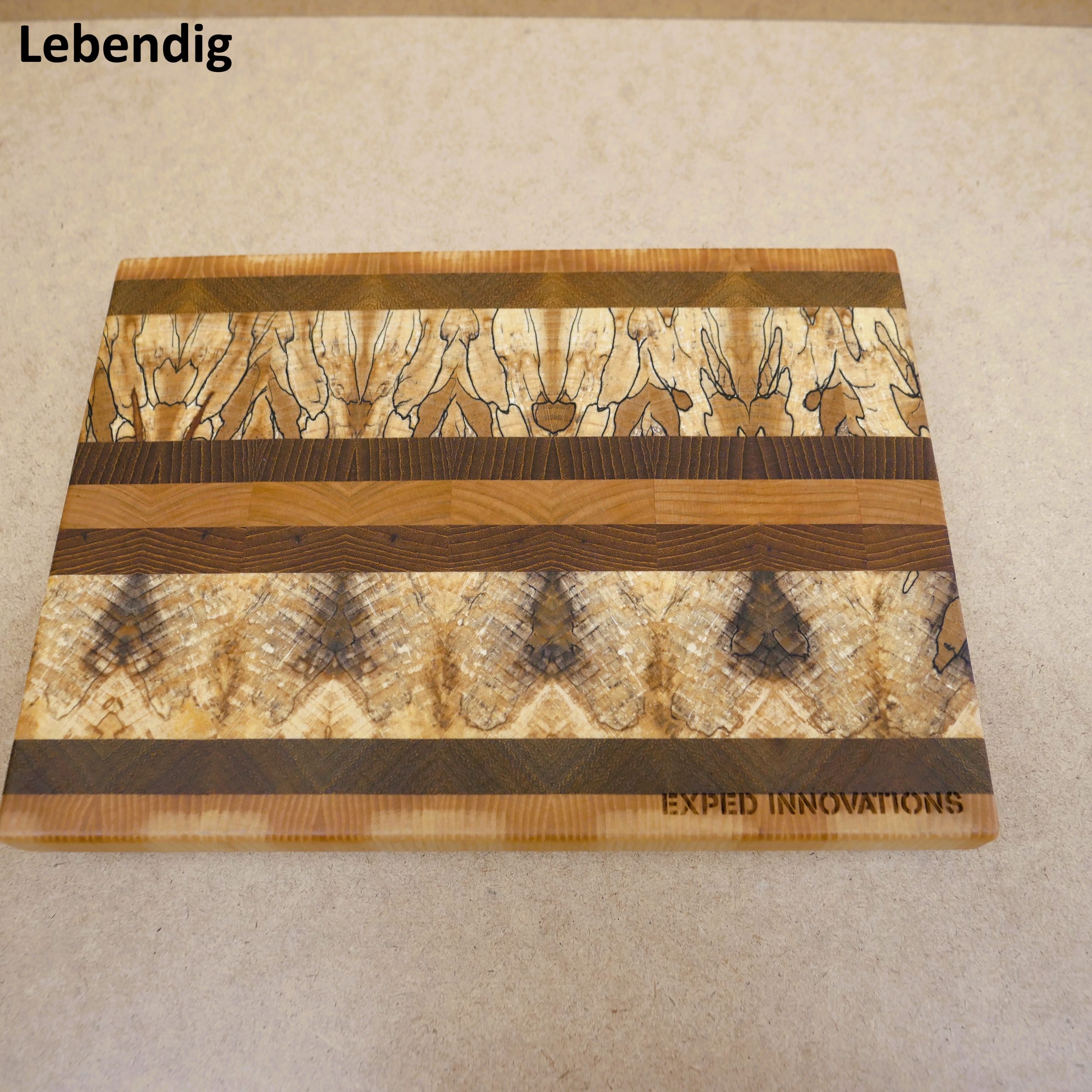 – Bitte geben Sie bei der Bestellung an ob Sie ein lebhaftes oder ein ruhigeres Brettchen möchten. Eine gezielte Auswahl eines Designs ist leider nicht möglich, da mit jeder neuen Charge auch neue Holzarten Verwendung finden – je nachdem was gerade in der Region verfügbar, qualitativ hochwertig und interessant ist (es kommen natürlich auch heimische Obst-Bäume etc. zum Einsatz).