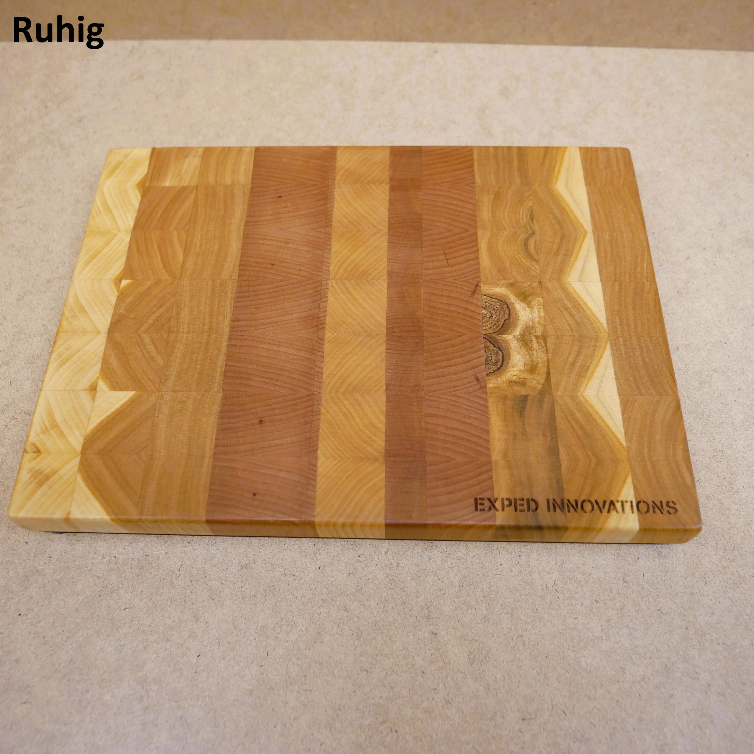 – Around 21×29 cm in size, between 800 and 900 Gramms (depends on the kind of wood) and 20mm thick (27 with stainless bases)